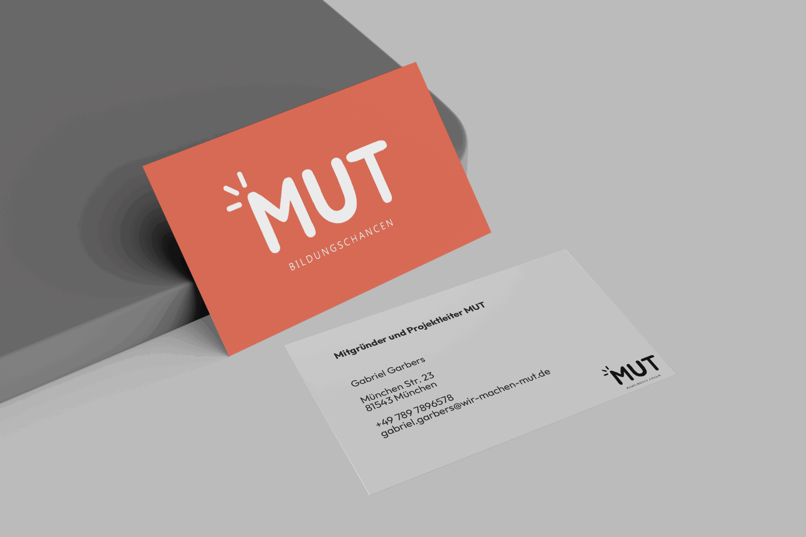 The Mut brand design features bold typography and a dynamic symbol, reflecting the empowerment and confidence gained through language learning.