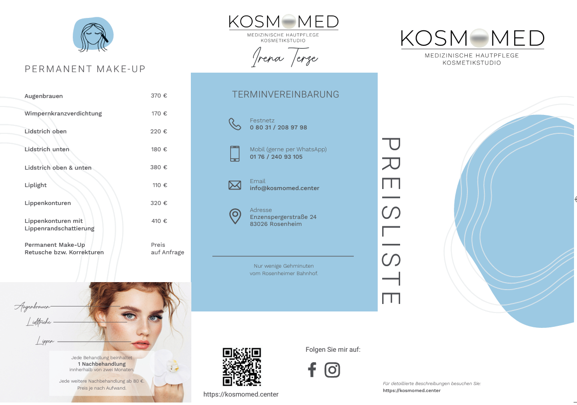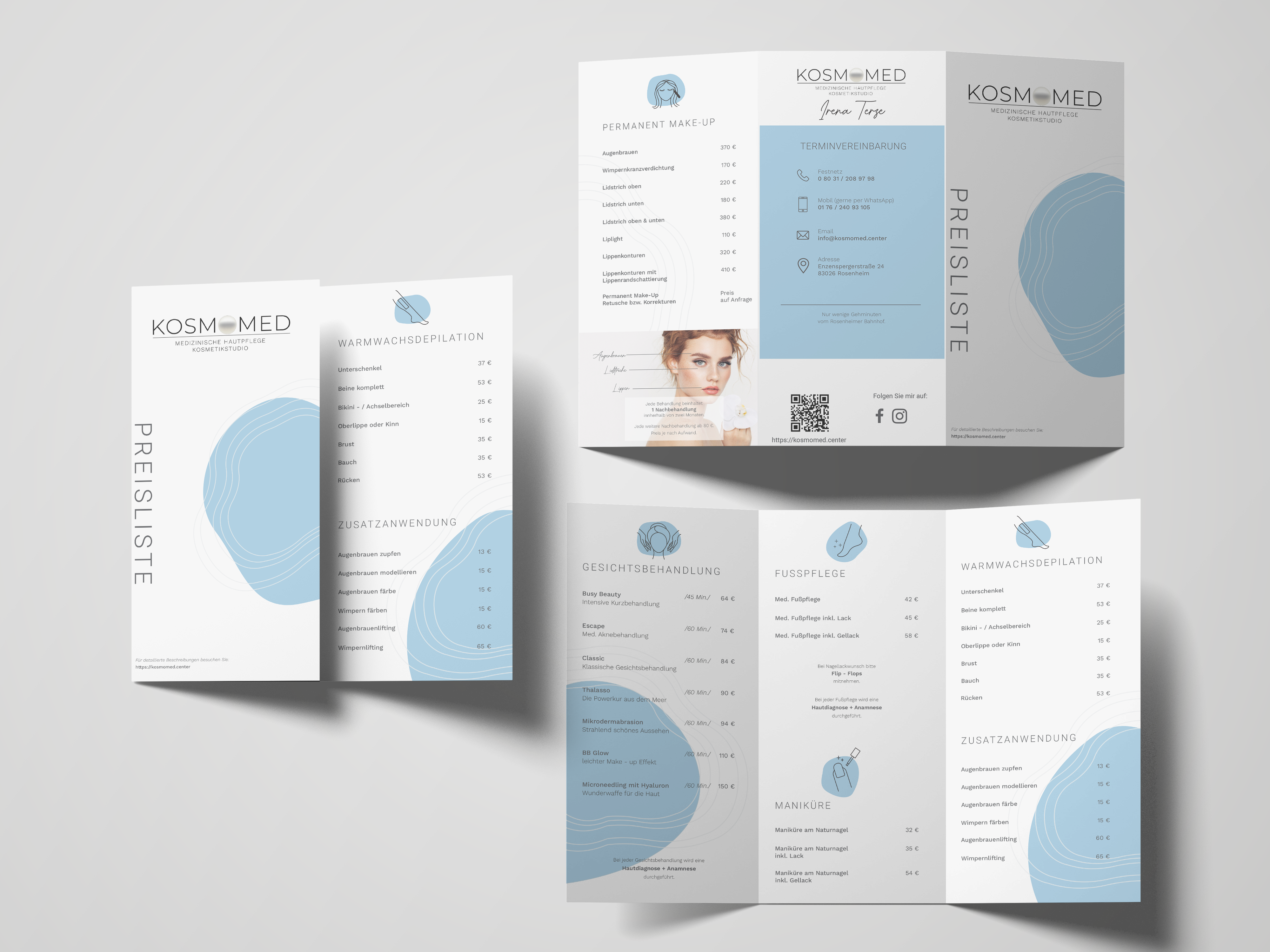 I created these flyers and business cards for a client in the cosmetics industry. The layout of the brochure is simple and eye catching. The use of symbols, elegant fonts, and a consistent color scheme creates a visually appealing appearance.