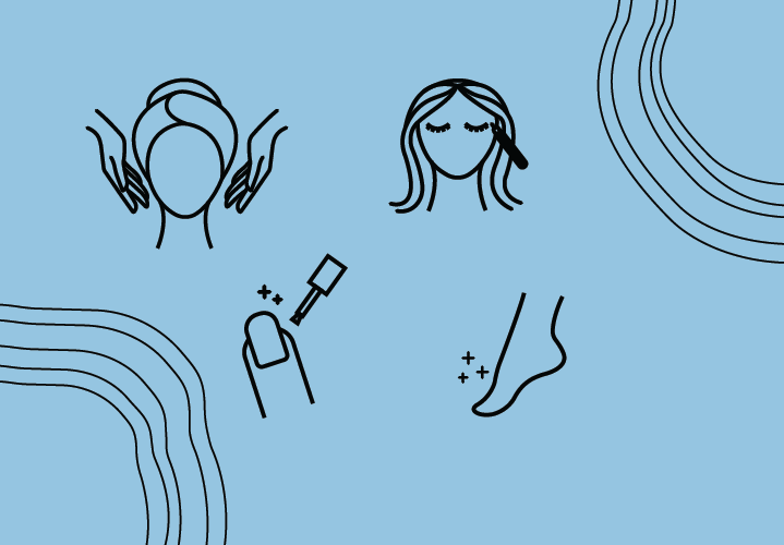 These graphic elements convey the sense of relaxation experienced during a cosmetic service. I used abstract shapes as background elements to enhance the visual atmosphere and support the tranquil design.